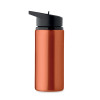 Recycled stainless steel (90% recycled stainless steel and 10% stainless steel) single wall bottle with foldable mouth piece, straw and lid with carrying handle. Capacity: 500 ml. As this is a single walled bottle, heat transfer can still occur.