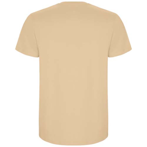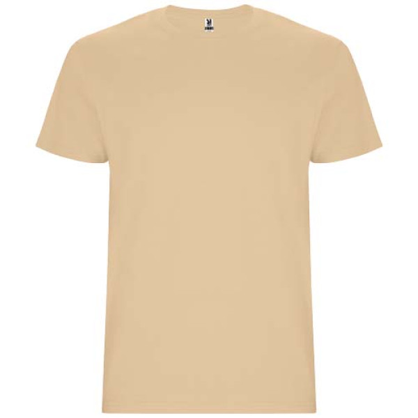 Tubular short-sleeve t-shirt. Crew neck with elastane. Side seams. Removable label.