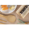"The NIGIRI sushi set will please every sushi enthusiast. The set includes two mats for winding rolls, a bamboo spoon, a knife for greasing and four pairs of sticks with the original Blue Collection print. "