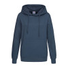 A durable ring-spun cotton-polyester-blend, midweight hooded sweatshirt for women, brushed inside with kangaroo pocket, elastic cuffs and waistband.