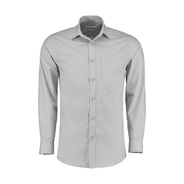 ·105 g/m² ·65% poliester, 35% pamuk (poplin) ·Čvrsti poluotvoreni ovratnik ·Jaram na stražnjoj strani ·Džep na prsima ·Gumbi u boji košulje ·Podesive manžete s 2 gumba s opcijom da se nose s ukrasnim manžetama ·Dvostruko prošiveni rukavi i bočni šavovi ·Zaobljeni donji rub ·Rezervni gumb ·Strukirani kroj ·Lako se pegla.