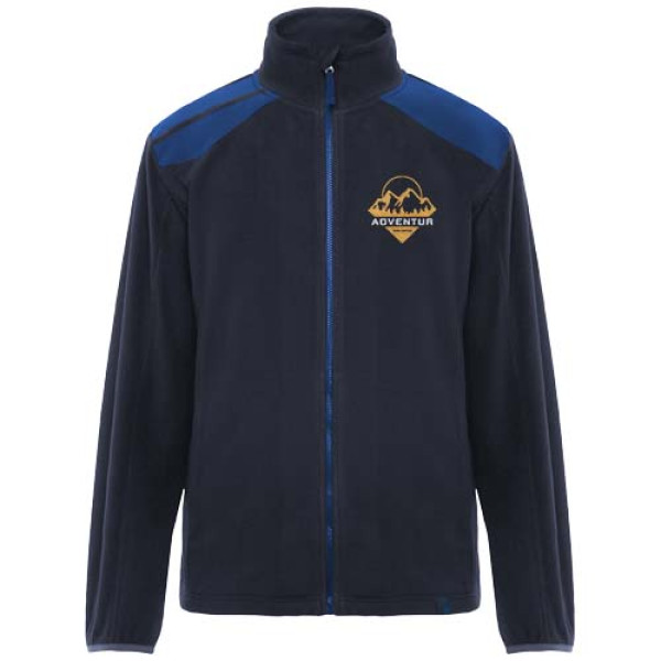 Microfleece jacket in a colour combination design. High collar and contrasting injected zip. Contrasting shoulders and details. Side pockets with zip. Elastic cuffs and side adjusters on hem.