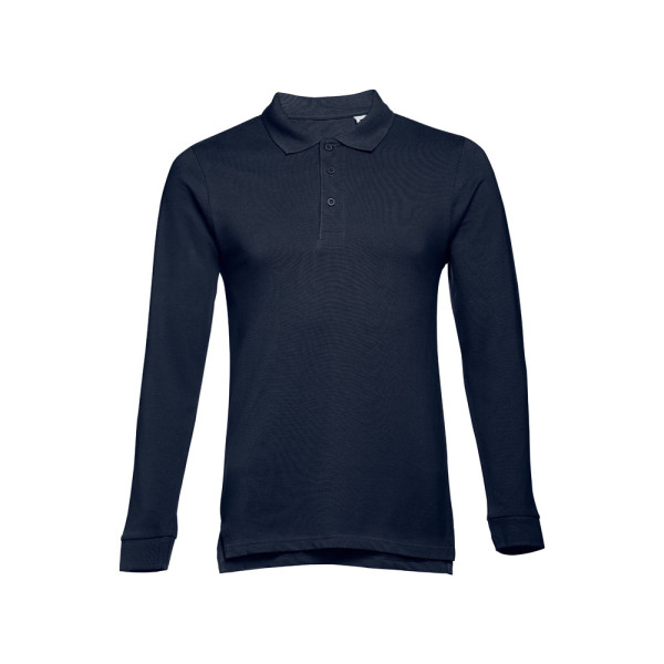 Muška polo majica dugih rukava od 100% piqué mesh pamuka (195 g/m²) (boja 183: 85% pamuk/15% viskoza). Majica ima regular fit kroj, a ranfle na rukavima i kragna su od rebrastog materijala. Ovratnik je ojačan piqué trakom. Na prednjoj strani, pored kragne, nalaze se tri gumba u boji majice (dodatni gumb umetnut u unutrašnji šav). Majica je rezana i šivena i ima bočne otvore na dnu. Ima vidljivu etiketu koja se može ukloniti. Veličine: S, M, L, XL, XXL