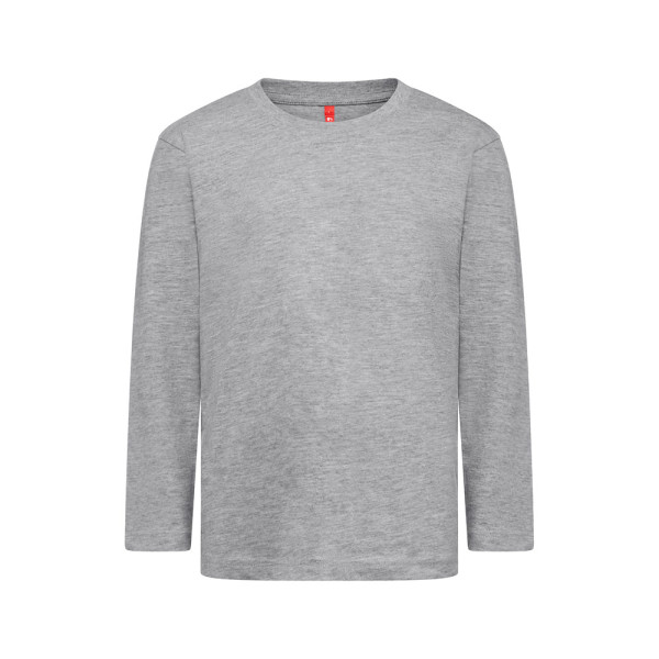 Majica dugih rukava (150 g/m²), s enzimskim tretmanom, za djecu od žerseja (100% pamuk s održivim poljoprivrednim praksama). 1x1 rebrasti ovratnik s trakom za pojačanje od žerseja. Cjevasta majica kratkih rukava pravilnog kroja i duplih prošiva na rukavima i donjem dijelu artikla. Veličina: 2, 4, 6, 8, 10, 12