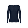 Ženska majica dugih rukava, 100% pamuk (150 g/m²), šivena iz tube. Boje 194, 195: 60% pamuk/40% poliester, boja 183: 90% pamuk/10% viskoza. Moderan kroj ima 1x1 rebrasti elastični ovratnik sa ojačanjem. Rezana i šivena i dupli štepovi na rukavima i dnu. Veličine: S, M, L, XL, XXL