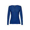 Ženska majica dugih rukava, 100% pamuk (150 g/m²), šivena iz tube. Boje 194, 195: 60% pamuk/40% poliester, boja 183: 90% pamuk/10% viskoza. Moderan kroj ima 1x1 rebrasti elastični ovratnik sa ojačanjem. Rezana i šivena i dupli štepovi na rukavima i dnu. Veličine: S, M, L, XL, XXL