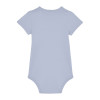 Set-in sleeve. 1x1 rib binding at neck collar and leg opening. Snap placket at shoulder. Snap closure at bottom.