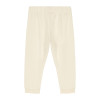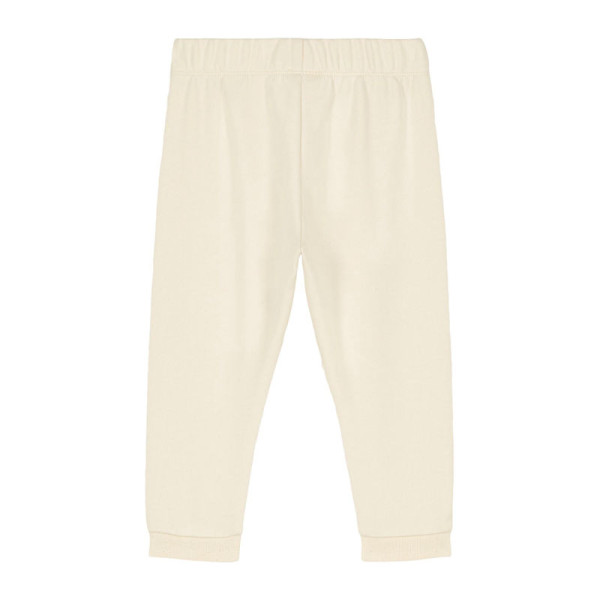 Self fabric elasticated grown on waistband . Narrow twin needle at waistband base. No side seam for extra comfort. 1x1 rib at bottom leg cuff.