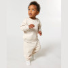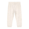 Self fabric elasticated grown on waistband . Narrow twin needle at waistband base. No side seam for extra comfort. 1x1 rib at bottom leg cuff.