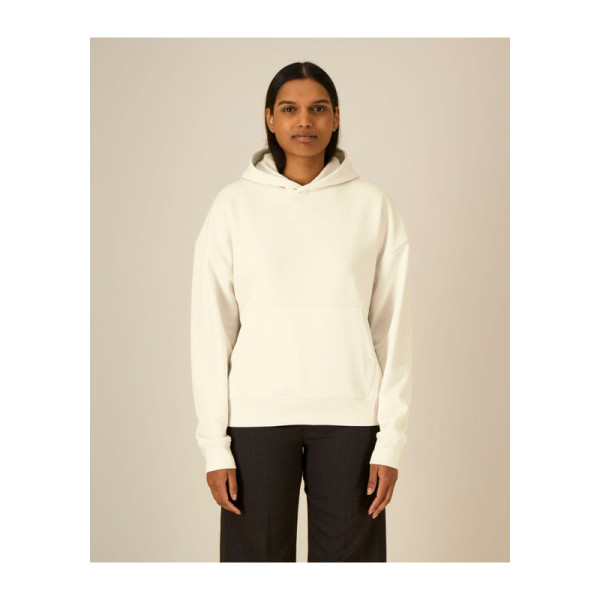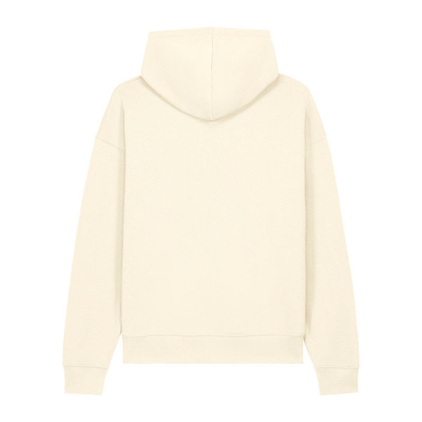 Set-in sleeves. Self fabric lined hood. 1x1 rib at sleeve cuff and hem. Kangaroo pocket. Inside back neck herringbone tape. Half moon at back neck.
