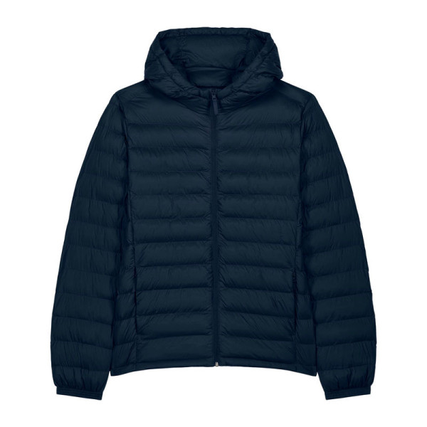 Set-in sleeve. High collar with grown on hood. Hood opening and bottom hem with adjustable plastic stopper and elastic cord. Reverse nylon zip at center front. Zipped welt pockets with extra grosgrain puller. Fully quilted. Side panels for better shape. Self fabric elasticated cuff. Inside seams with binding finish. Bottom hem with adjustable plastic stopper and elastic cord.