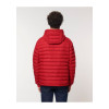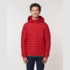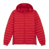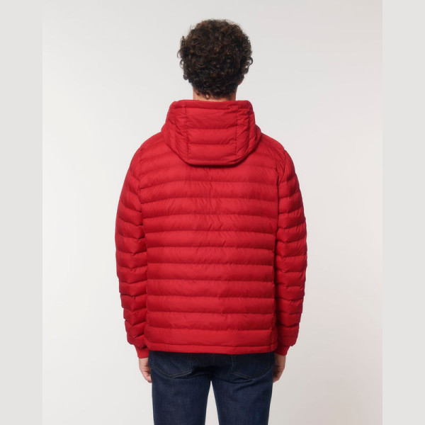 Set-in sleeve. High collar with detachable hood with matte metal hidden snaps. Hood opening and bottom hem with adjustable plastic stopper and elastic cord. Reverse nylon zip at center front. Zipped welt pockets with extra grosgrain puller. Fully quilted. Side panels for better shape. Soft 1x1 rib at sleeve hem. Inside seams with binding finish.