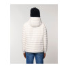 Set-in sleeve. High collar with detachable hood with matte metal hidden snaps. Hood opening and bottom hem with adjustable plastic stopper and elastic cord. Reverse nylon zip at center front. Zipped welt pockets with extra grosgrain puller. Fully quilted. Side panels for better shape. Soft 1x1 rib at sleeve hem. Inside seams with binding finish.