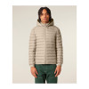 Set-in sleeve. High collar with detachable hood with matte metal hidden snaps. Hood opening and bottom hem with adjustable plastic stopper and elastic cord. Reverse nylon zip at center front. Zipped welt pockets with extra grosgrain puller. Fully quilted. Side panels for better shape. Soft 1x1 rib at sleeve hem. Inside seams with binding finish.