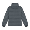 Set-in sleeve. High collar with detachable hood with matte metal hidden snaps. Hood opening and bottom hem with adjustable plastic stopper and elastic cord. Reverse nylon zip at center front. Zipped welt pockets with extra grosgrain puller. Fully quilted. Side panels for better shape. Soft 1x1 rib at sleeve hem. Inside seams with binding finish.