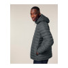 Set-in sleeve. High collar with detachable hood with matte metal hidden snaps. Hood opening and bottom hem with adjustable plastic stopper and elastic cord. Reverse nylon zip at center front. Zipped welt pockets with extra grosgrain puller. Fully quilted. Side panels for better shape. Soft 1x1 rib at sleeve hem. Inside seams with binding finish.