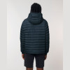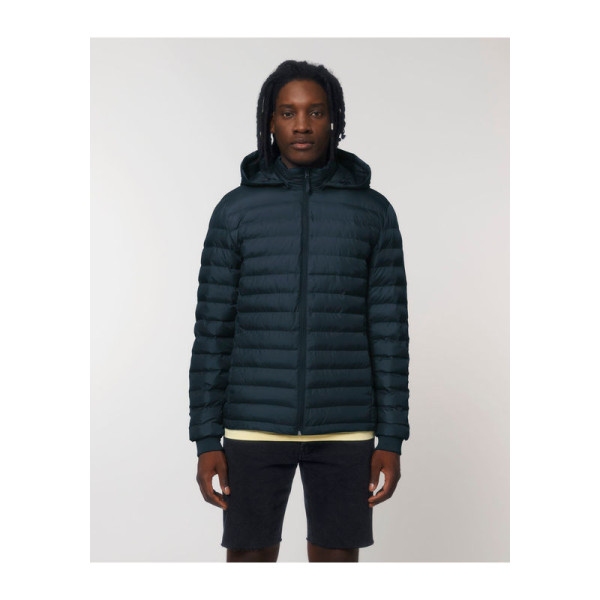 Set-in sleeve. High collar with detachable hood with matte metal hidden snaps. Hood opening and bottom hem with adjustable plastic stopper and elastic cord. Reverse nylon zip at center front. Zipped welt pockets with extra grosgrain puller. Fully quilted. Side panels for better shape. Soft 1x1 rib at sleeve hem. Inside seams with binding finish.