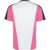 Sports set with short-sleeved T-shirt and shorts. Print on front panel. Piping on raglan sleeve seams. Mesh fabric detail in the centre back, left free for customization. Trousers in main fabric with side bands in breathable fabric. Contrast piping seams.