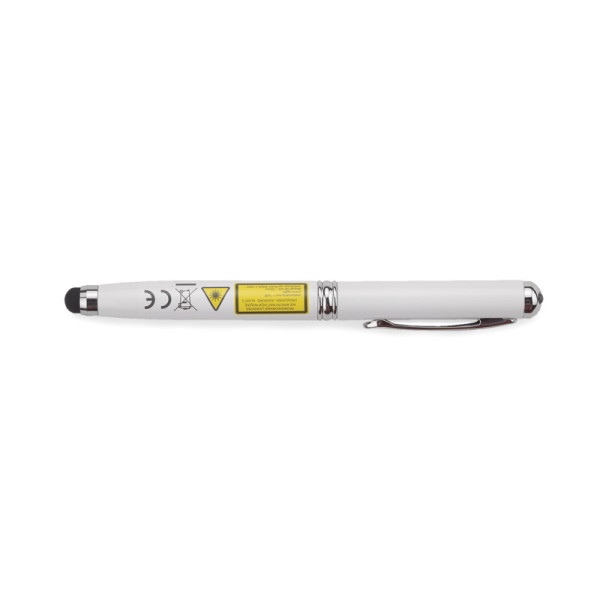 Ball pen made from metal with 4 useful functions: ball pen, touch pen, laser pointer and flash light. One thing containing everything you may need during presentations or business meetings. Logo will be engraved.According to European Union directive and Polish standard laser pointer is marked with warning label.