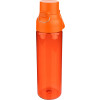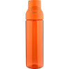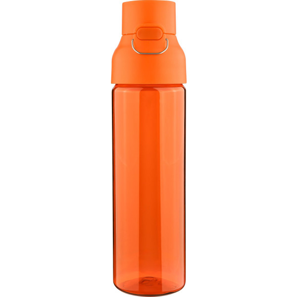 Tritan drinking bottle with 750 ml capacity, featuring a colored body matched to the lid. Made with durable, lightweight materials (PP) that resist moisture, chemicals, and everyday wear for long-lasting performance. Includes a button closure and a top carrying handle for easy transport. Designed for everyday use at work, school, or during activities.