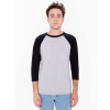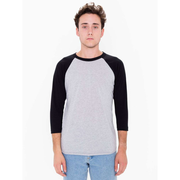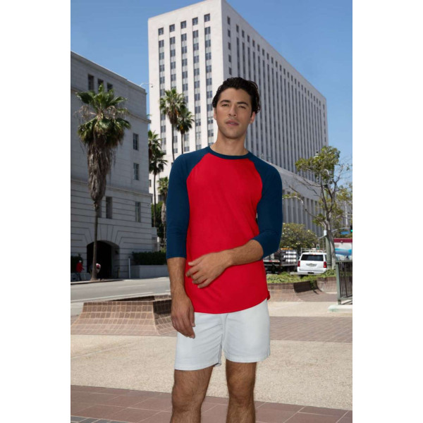 125.0 G/SqM;50% combed ring-spun cotton / 50% polyester;¾” neck rib binding;Raglan 3/4 sleeves;1” double-needle sleeve hem;Overlock edge bottom hem;Side seam;Double-satin razor label;