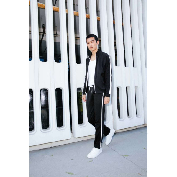 265.0 G/SqM;100% Ring Spun Combed Cotton;3.2 cm covered elastic waist with white exposed drawcord;Single-needle topstitched side pockets;Self-fabric 1 cmwhite stripe on sideseam;2.2 cm hemmed leg openings;Double-satin razor label;