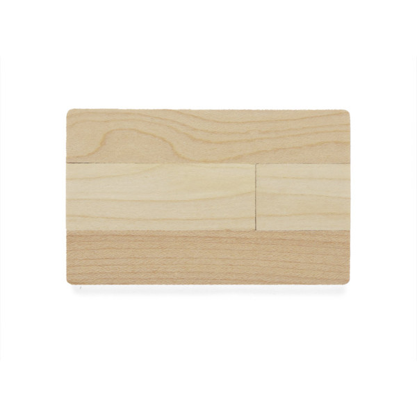 The WOODCART USB stick in a popular credit card shape, but made entirely of wood. The product is packed in a brown paper box. 16 GB USB stick. USB Standard: 2.0; write speed: 4.5 MB / s; reading speed: 12 MB / s. The USB stick is covered by a 5-year manufacturer's warranty and has a CE certificate. The product is packaged in kraft packaging.
