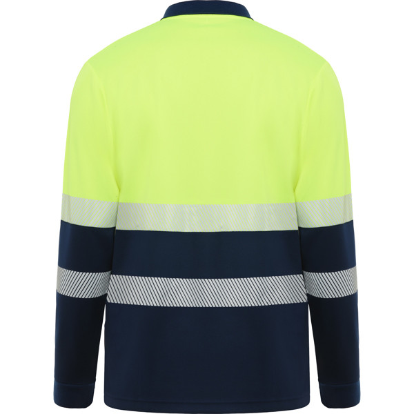 High-visibility long-sleeve polo shirt in technical fabric.· 1x1 ribbed fabric in collar and cuffs.· Two segmented high-visibility strips on chest and back.· Contrasting 3-button placket.· Anti-snagging and easy-dry fabric.