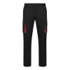 Dvobojne rastezljive hlače s više džepova (240g/m²), od pamuka (46%), EME (38%) i poliestera (16%). Uzak kroj, elastični pojas i kontrastna boja na umetcima, potpornjama i šavovima. Sadrži šest džepova (2 francuska džepa, 2 bočna džepa i 2 stražnja džepa). Veličina: 34, 36, 38, 40, 42, 44, 46, 48, 50, 52, 54, 56, 58, 60