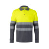 Dvobojna piqué polo majica (150g/m²) s dugim rukavima, od pamuka (55%) i poliestera (45%). Gumbi i ovratnik u kontrastnoj boji. Rebrasti ovratnik i manšete. Reflektirajuće trake na torzu i rukavima. Jedan prsni džep. Proizvod u skladu s EU Reg. 2016/425, ovjeren prema EN20471 i klasa br. 1. Veličina: S, M, L, XL, 2XL, 3XL