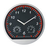 Wall clock in cool sports design, with thermo and hygrometer. We will print your advertisement on the bottom frame.