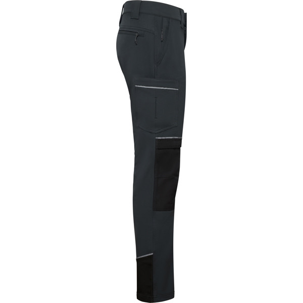 Multi-pocket long trousers.· Abrasion-resistant reinforced knee pads with access for protectors.· Durable and stretch main fabric.· Triple-stitched for extra strength.· Waistband with extra wide belt loops for tool belts.· Two front hip pockets with an inner zip pocket on the right.· Two back welt pockets with zip.· A cargo pocket with flap and Velcro closure on the left leg.· Right-leg gusset pocket without flap.· Reinforced crotch panel.· Outer Roly WRK label.