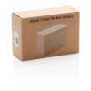 Small but powerful 3W wireless speaker made out of a natural wheat fiber (35%) mixed with ABS that can be taken anywhere you go to play your favorite music. With 500 mah battery that allows a playing time up to 4 hours on one single charge and operating distance of 10m using BT5.0. With mic and pick-up function.