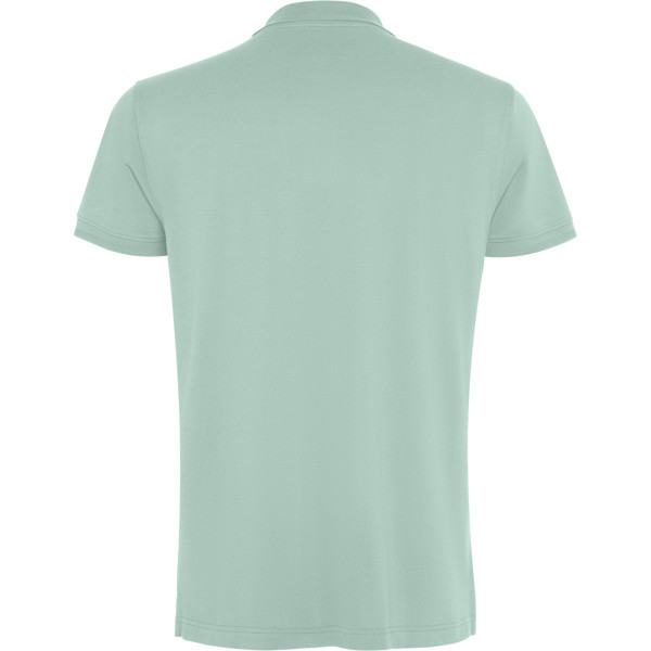 Short-sleeved piqué polo shirt. 1x1 woven ornamental detailing at the neck and sleeves. 2-button placket. Taped neck in matching fabric. Side slits at the hem. Back slightly longer than the front.