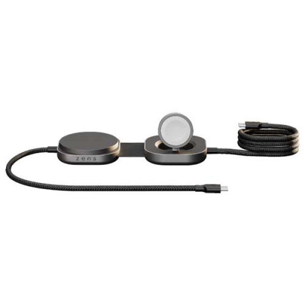 Power your MacBook or any USB-C device while wirelessly charging your iPhone (12+), AirPods and Apple Watch at the same time with this smart 3-in-1 USB-C Pro 3 charging cable. It supports up to 140W USB-C Power Delivery and delivers Qi2-certified 15W fast wireless charging (5W for Apple Watch) to keep all your essential devices powered. Crafted from premium aluminium with a compact, foldable design, it’s ideal for commuting, hybrid working and travel. For optimal performance, use it with a USB-C adapter of at least 65W (140W recommended).