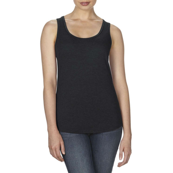 159.0 G/SqM;50% Polyester /25% Combed Ring-Spun Cotton /25% Viscose;Yarn Count 32/1;High stitch density for a smoother printing surface;Wicking properties;Semi-fitted contoured racerback silhouette with side seam;Bound self-trim neck and armhole;Twin-needle curved bottom hem;TearAway label;Oeko-Tex® Standard 100 Certified;